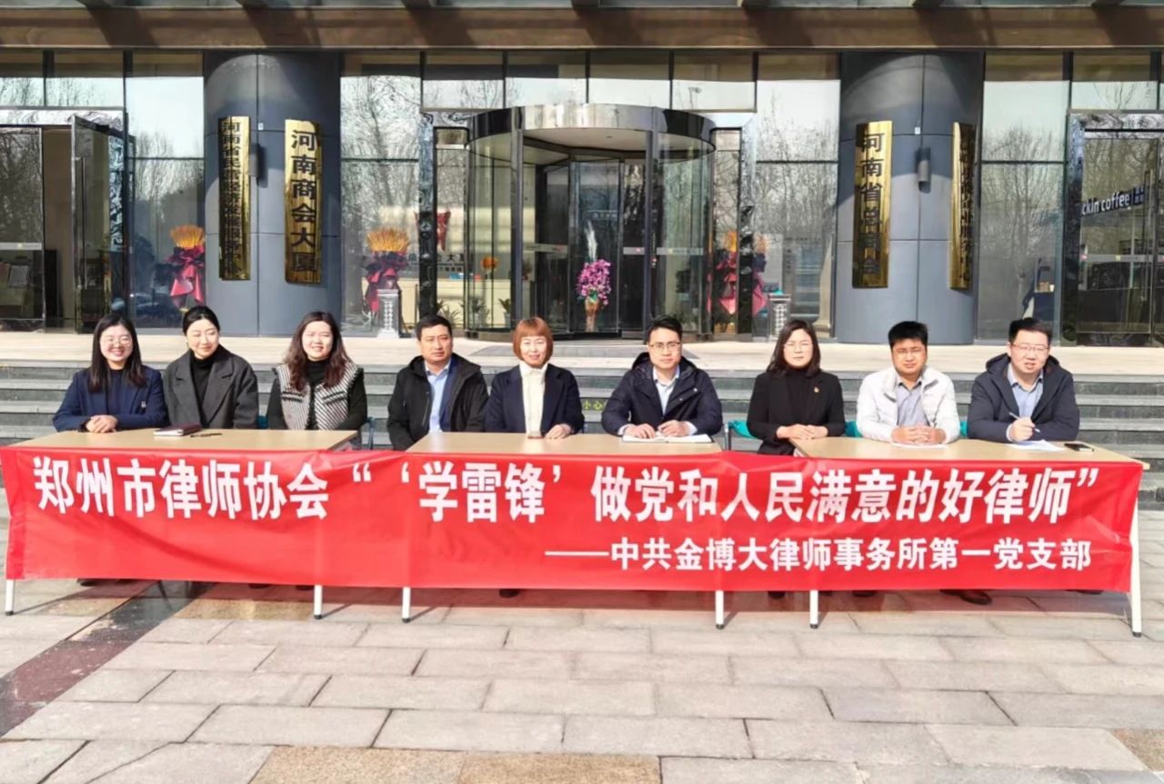 根据郑州市律师协会《关于开展“学雷锋 我为群众办实事 做党和人民满意好律师”宣传月活动的通知》以及金博大律师事务所、中共金博大律师事务所委员会《关于开展“学雷锋 我为群众办实事 做党和人民满意好律师”宣传月活动的实施方案》,2024年3月26日,中共金博大律师事务所第一党支部律师们在河南商会大厦门前通过张贴横幅、现场解答咨询等形式开展“学雷锋 我为群众办实事 做党和人民满意好律师”宣传活动。