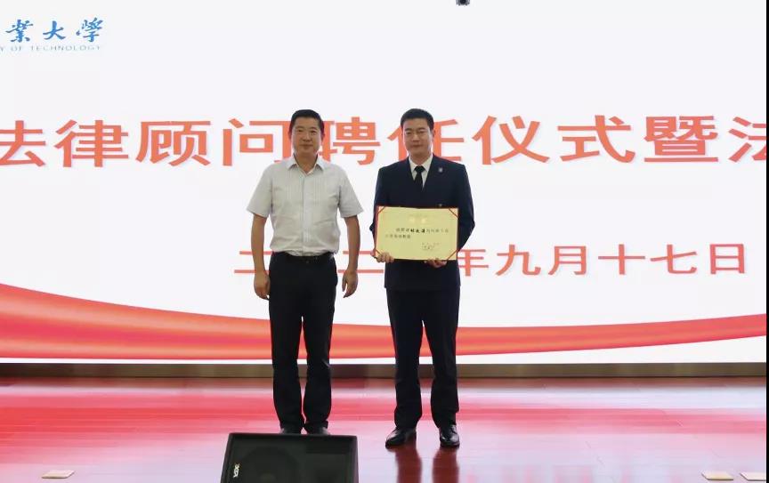 2021年9月17日下午,金博大律师事务所孙保山副主任、张延涛律师应邀在河南工业大学为老师及学生代表做专题讲座并举行法律顾问、客座教授聘任仪式。本次讲座受到河南工业大学领导、老师的高度重视,河南工业大学副校长李焕锋、办公室主任孙志明及其他老师和学生代表对孙保山副主任、张延涛律师的到来表示热烈的欢迎。本次专题讲座暨聘任仪式由河南工业大学办公室主任孙志明主持。