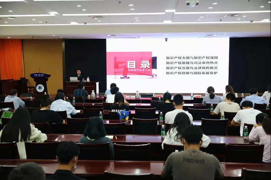 本次讲座中,张延涛律师从“知识产权大国与知识产权强国、知识产权新规与司法审判热点、知识产权合规与法律风险防范、知识产权创新与国际发展保护”四个方向入手,结合生动鲜明的举例,将理论融于实际,深入浅出地对诸多焦点问题做出解释,讲座在与会人员的热烈掌声中圆满结束。